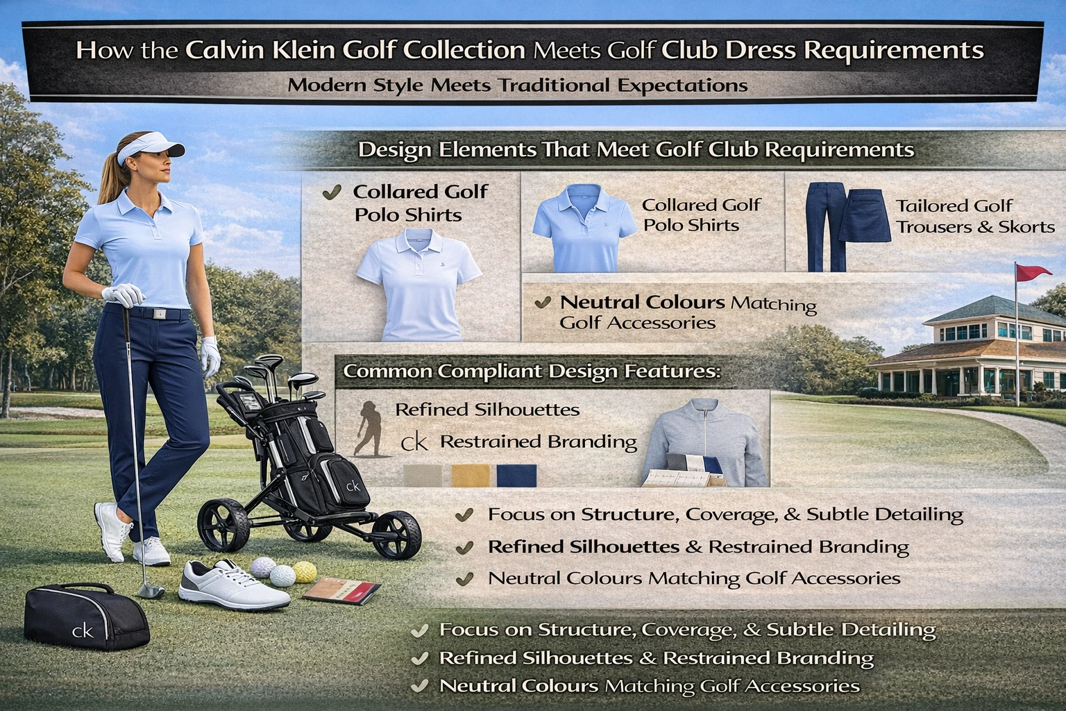 Design elements that meet golf club requirements focus on structure, coverage, and subtle detailing. Calvin Klein golf clothing uses refined silhouettes and restrained branding to ensure acceptance across private and public clubs. These elements complement essential equipment such as golf clubs, handed golf clubs, and various golf balls, including ladies golf balls, mens golf balls, and junior golf balls.