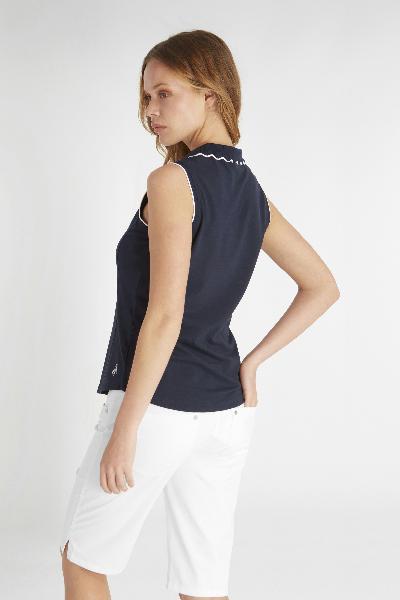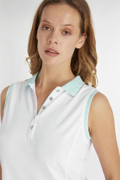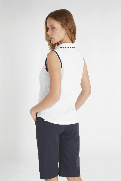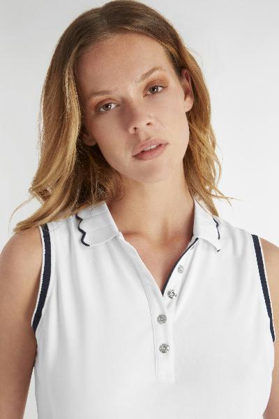 Adding a feminine edge to a golfing classic the updated Club Polo features a delicate needle out knitted collar with a scalloped edge. Contrast tipping highlights the placket, collar and cuffs. Made from a premium organic cotton blend fabric with added stretch in a soft pique weave. Organic cotton sustains the health of soils, ecosystems and people by using natural processes.