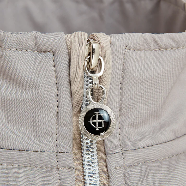 2-way zip to the front, with chin guards